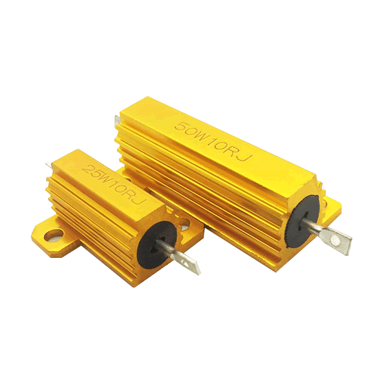 金[敏感词]铝壳电阻叫做金属铝壳电阻、 无感铝壳电阻、黄金铝壳电阻、LED铝壳电阻、[敏感词]铝壳电阻等。外壳采用铝合金制造,表面具有散热沟 槽,具有体积小,功率大,耐高溫,过载能力强,耐气候性、高精度、高稳定、强构架特性,有利于机械保护,安装方便。